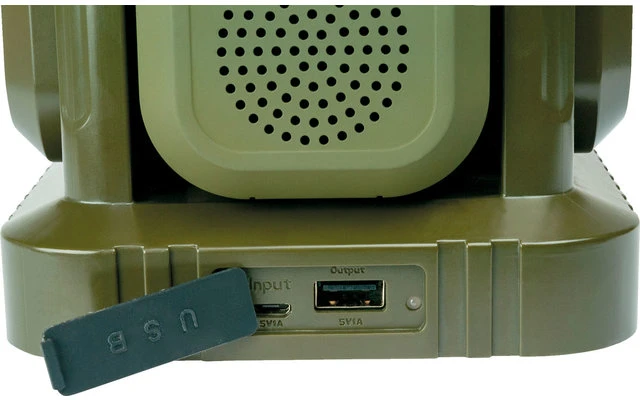 Diese Schwaiger Campingleuchte ist derperfekte Begleiter bei jedem Ausflug, egal ob in die Wildnis oder an den Campingplatz. Die Leuchte besteht aus einer Haupteinheit sowie 3 abnehmbaren Zusatzelementen (2x Leuchte + 1x Bluetooth® Lautsprecher). Die Stromversorgungder Haupteinheit übernimmt ein 5.000 mAh großer Lithium Akku, welcher via Magnetkontakten zusätzlich die montierten Elemente und deren Akkus lädt.