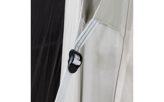 - Quickpitch – Abspannsystem: Aufbau in Sekundenschnelle. Ziehen Sie den unteren Gurt straff und stellen Sie den Verschluss so ein, dass Spannung entsteht
