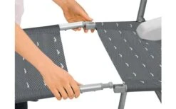 Stabiles Metallgelenk und hochwertiges Aluminium- Ovalrohr-Gestänge ist sehr leicht. Gerippte Fußkappen sorgen für optimalen Halt.