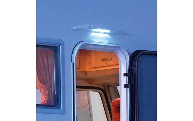 Die LED-Lämpchen reichen aus, um den Eingangsbereich des Wohnmobils oder des Caravans zu erhellen. Bewegungssensor mit einer Reichweite von ca. 3 m. Mit Dämmerungsschalter und Aktivierungsschwelle bei ca. 50 Lux.