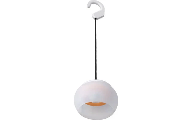 Handliche Hängeleuchte mit 4 LEDs und Schnur mit Haken zum Aufhängen. Das Gehäuse ist durch einen Silikonschirm verhüllt. Betrieb mit 3 Microzellen AAA (nicht im Lieferumfang enthalten).