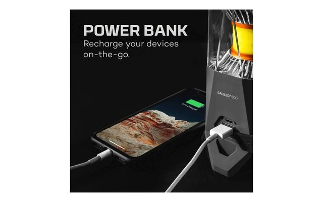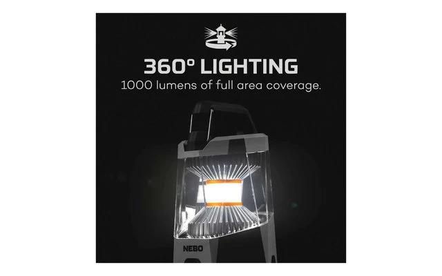 Die wiederaufladbare C.O.B LED-Laterne GALILEO 500/1000 von Nebo verfügt über 5 praktische Modi und eine Dimmfunktion. Das Smart Power Control System sorgt für eine optimale Stromversorgung und schützt die Lampe vor dem Überhitzen. Der leistungsstarke Akku kann direkt in der Lampe über einen USB-Anschluss geladen werden, oder als Powerbank für andere Geräte als Stromquelle dienen. Der Karabiner Handgriff ermöglicht zusätzlich ein einfaches Aufhängen der Laterne im Zelt oder am nächsten Ast.