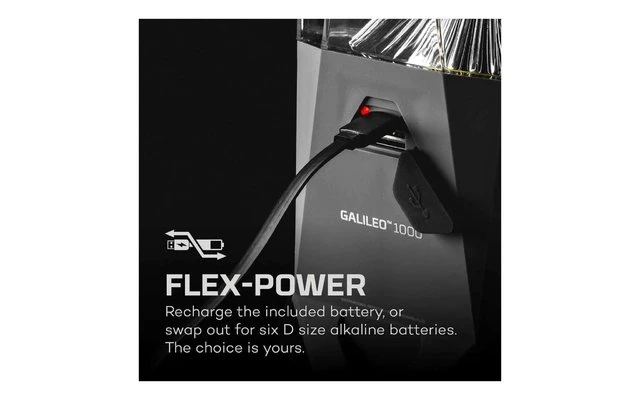 Bei der GALILEO 1000 kann Dank Flex-Power, die Laterne alternativ auch mit 6x D-Cell Batterien betrieben werden.