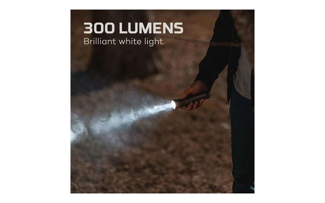 - Lichtstrom: weiß: 300 Lumen / 30 Lumen, rot: 30 Lumen / 3 Lumen