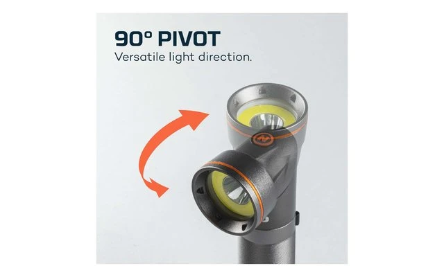 Die Nebo Franklin Pivot RC ist eine vielseitige 4-in-1 LED-Leuchte mit einem C.O.B Arbeitslicht, einem Spotlicht, einem roten Warnlicht, sowie einem rot blinkenden Warnlicht. Alle Modi sind stufenlos dimmbar. Das besondere Merkmal der Franklin Pivot RC liegt in dem um 90 Grad schwenkbaren Lampenkopf, wodurch die Taschenlampe in eine nach vorn gerichtete Stablampe verwandelt werden kann. Der integrierte Akku wird über einen USB-Anschluss geladen. Ein ausklappbarer Taschenclip sowie ein kräftiger Magnetfuß ermöglichen zahlreiche Befestigungsvarianten.