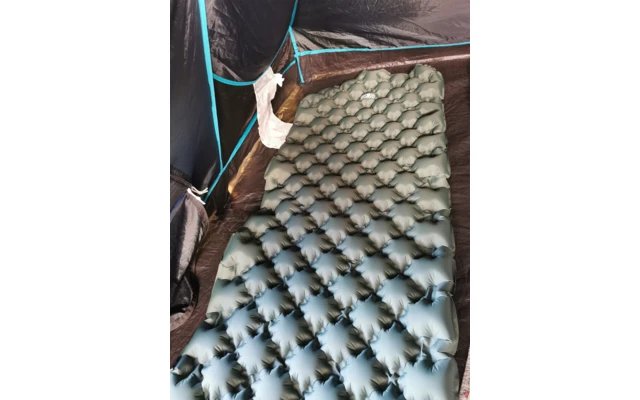 Sehr leichte und schnell aufzublasende Isomatte mit sehr kleinem Packmaß. Mit nur wenigen Atemzüge ist die Luftmatratze sekundenschnell aufgeblasen. Das Einwegventil verhindert das Austreten von Luft zwischen den Atemzügen. Die wabenförmigen Luftkammern reduzieren die Luftzirkulation, sorgen für hohe Isolationseigenschaften und ein angenehmes Schlaferlebnis. Die Isomatte ist wasserdicht, langlebig und reißfest. Ideal für Outdoor-Aktivitäten wie Wandern, Camping, Radtouren und Strand geeignet. Ausgestattet mit Packsack, Reparaturflicken und Kompressionsriemen.