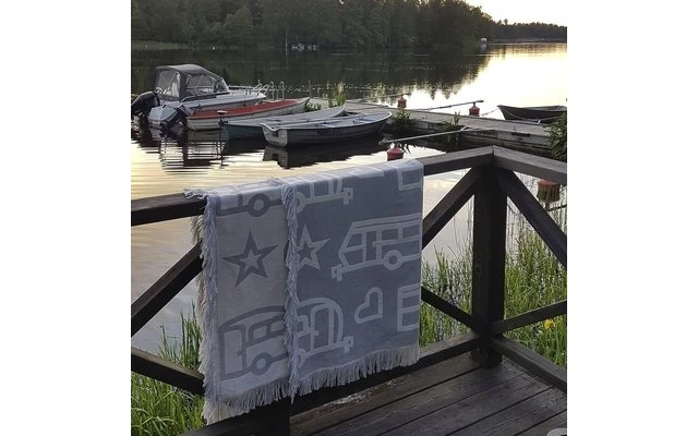 Mit zwei verschiedenen Mustern (Wohnwagen/Wohnmobil) einmal weiß auf grau und einmal grau auf weiß.